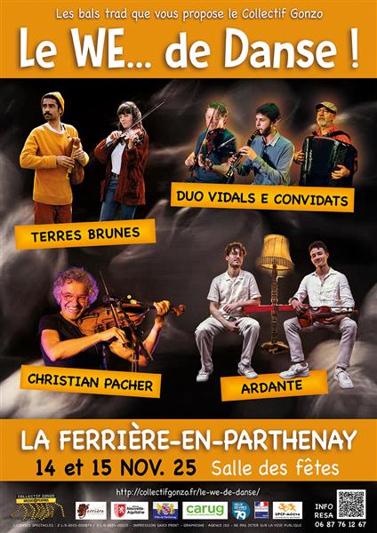 Le collectif Gonzo en partenariat avec l'UPCP-Métive, le Carug et la commune de la Ferrière-en-Parthenay, organise Le Week-end de danse #4, une fête à taille humaine pour danser et partager. Une salle des fêtes adaptée à la danse, une autre adaptée pour le bar, une envie d'être ensemble, un moment privilégié pour cotoyer de près tous les musiciens de talents qui nous font l'honneur de venir.