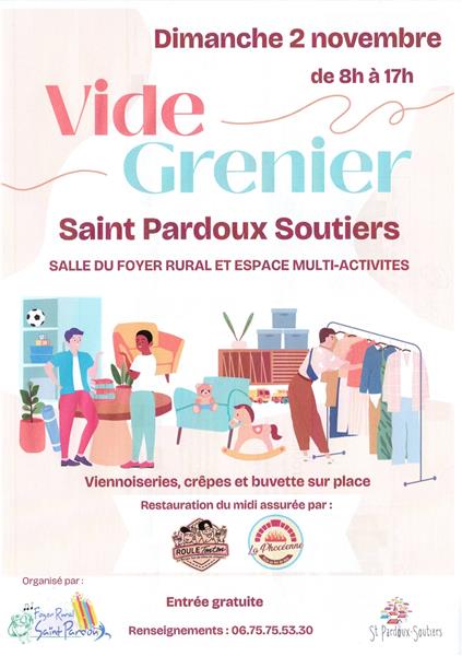 Vide grenier organisé par l'association du Foyer Rural , à l'Espace multi-activités et la salle du Foyer Rural.