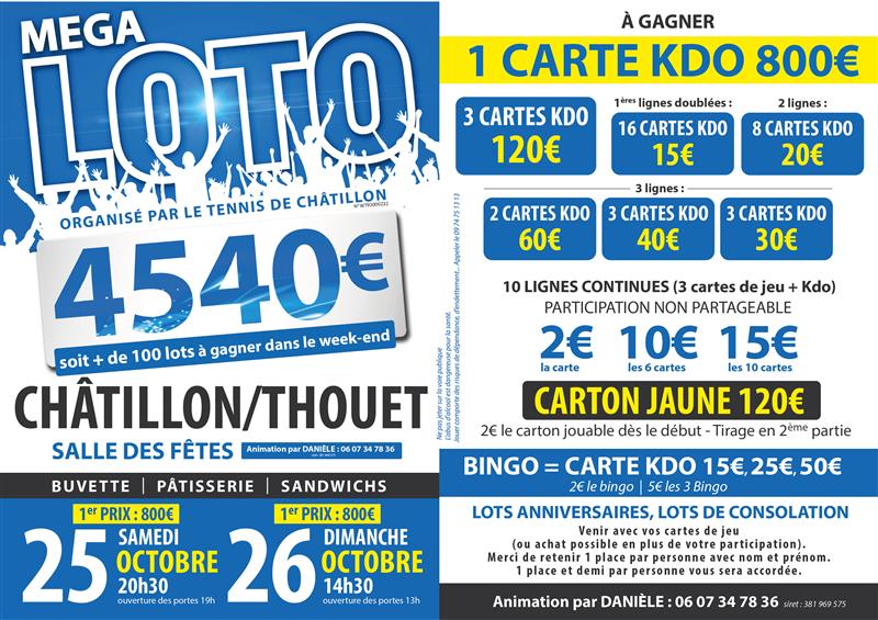 LOTO organisé par le Tennis club de Chatillon sur Thouet