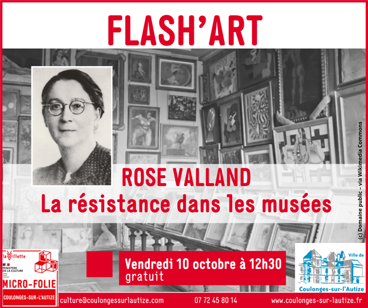 Flash Art – Portrait sensible de Rose Valland , prenez une pause culturelle avec nous ! En 30 minutes, découvrez Rose Valland, une résistante pas comme les autres, qui a œuvré dans l’ombre pour protéger et restituer les œuvres d’art spoliées pendant la Seconde Guerre mondiale. Un moment fort et inspirant pour mieux comprendre l’histoire des musées, le courage d’une femme exceptionnelle et l’importance du travail de mémoire et de transmission.
