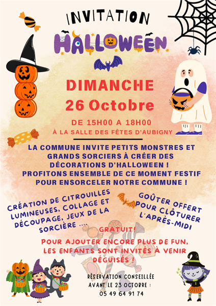 Dimanche 26 octobre, la commune d'Aubigny invite ses enfants et leurs parents à se joindre aux animations d'Halloween.