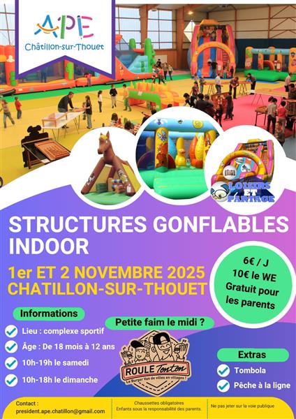 L'APE de Châtillon-sur-Thouet organise un week-end dédié au structures gonflables indoor pour les enfants à partir de 18 mois.