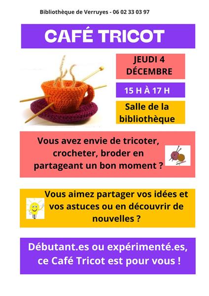 Nouvelle activité à la bibliothèque : un CAFÉ TRICOT.