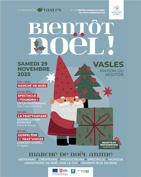De 10h à 18h : Marché de noël 11h à 15h : Spectacle “Toundra” de Les Expl'Orateurs 18h30 : Déambulation de la Frat’Fanfare 19h30 : Concert de Gospel’ère et Frat’Voices