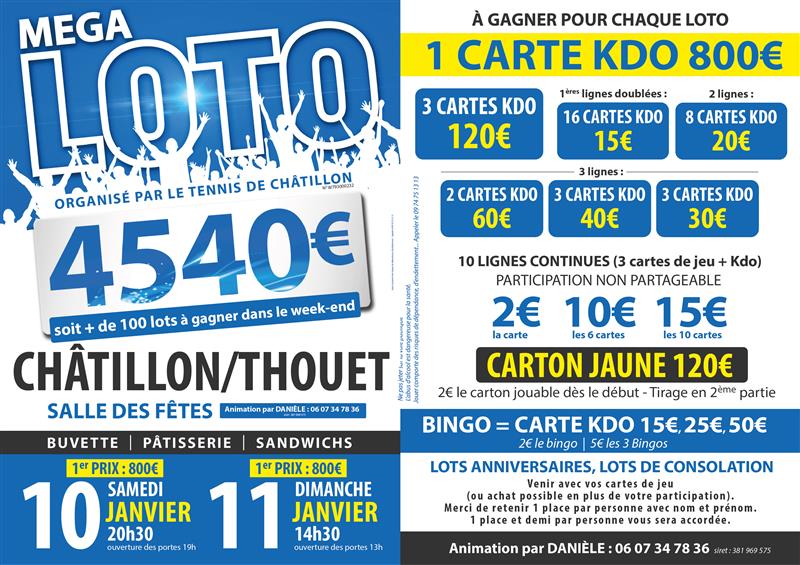 LOTO organisé par le Tennis club de Chatillon sur Thouet.