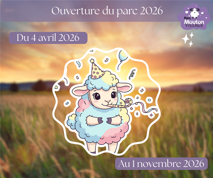 Le parc Mouton Village rouvre ses portes à compter du samedi 4 avril 2026, les jours et horaires d’ouvertures sont disponibles sur notre site internet.