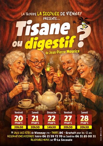La troupe La Secouée revient à la Salle des fêtes de Viennay pour sa représentation annuelle avec la comédie « Tisane ou digestif ? » de Jean-Pierre Mourice.