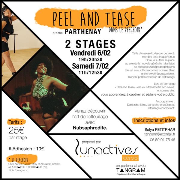 Lors de son stage « Peel and Tease » elle vous transmettra son savoir, et comme elle, vous apprendrez à captiver et séduire votre public.