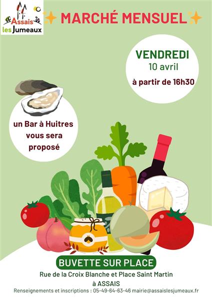 La commune d'Assais-les-Jumeaux propose un marché mensuel le deuxième vendredi de chaque mois, à partir de 16 h sur la Place des Tilleuls.