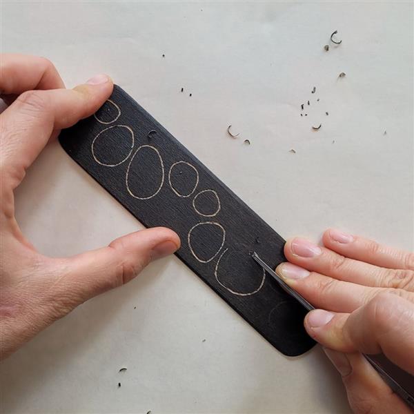 Créez et gravez l’ornement de votre marque-page en bois de hêtre teinté avec une gouge.