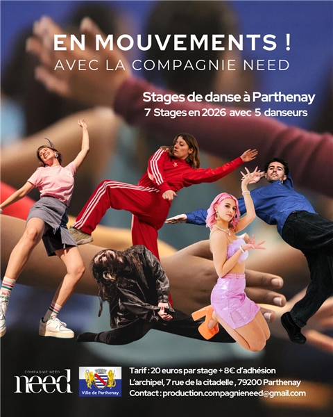 Tout au long de l’année 2026, la compagnie need vous invite à explorer le mouvement sous toutes ses formes à Parthenay.